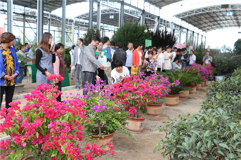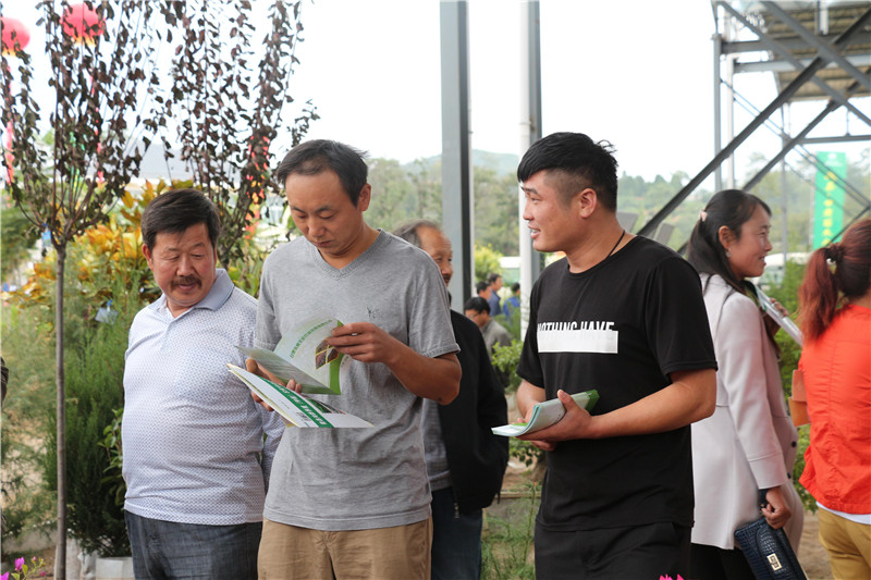 公司展位設在隴東南苗木市場5號大棚水陽鎮展區,占地面積100平方米,共展出高桿石楠10株,石楠球10株,高桿桂花(金桂)10株,叢生桂花(丹桂)10株,三角梅10盆以及鐵樹10株。走進展區,一盆盆姹紫嫣紅的三角梅,宛若輕歌曼舞的姑娘,一株株蒼勁有力的鐵樹,有如英姿煥發的軍人,吸引了大批參會嘉賓和苗木大戶駐足觀賞,拍照留念,同時,公司組織員工發放了宣傳冊800多份,向嘉賓和客商詳細介紹了公司苗木基地建設和樹種栽植情況。
