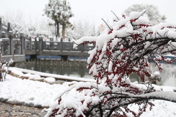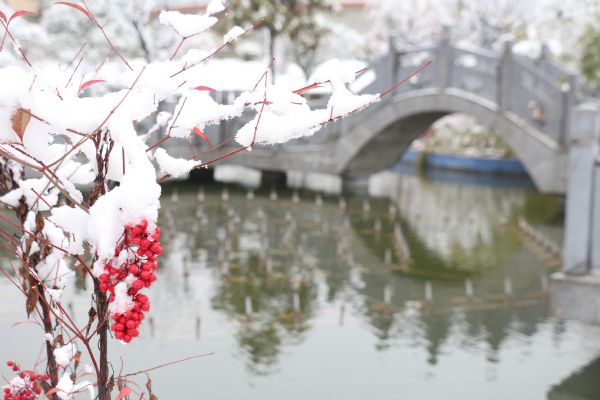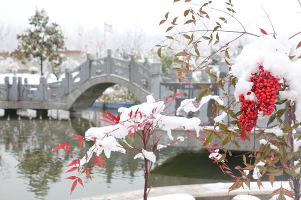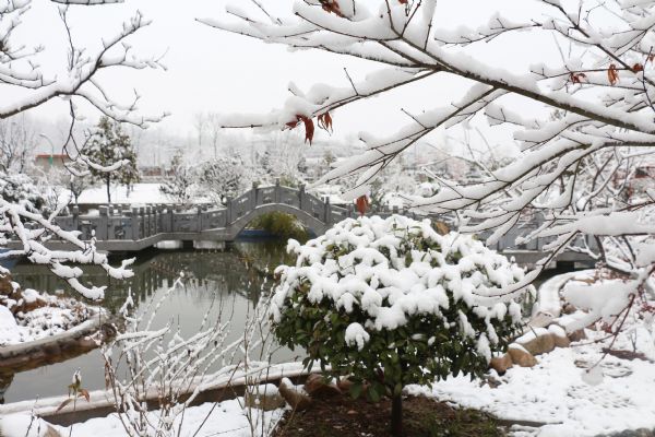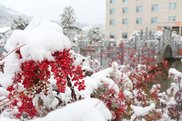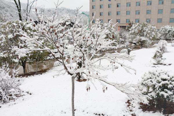 初春的第一場雪,把徽縣這座美麗的江南小城裝扮的更加俊俏了,然而懋達公司院內的花花草草,把春雪的美詮釋的更加完美。