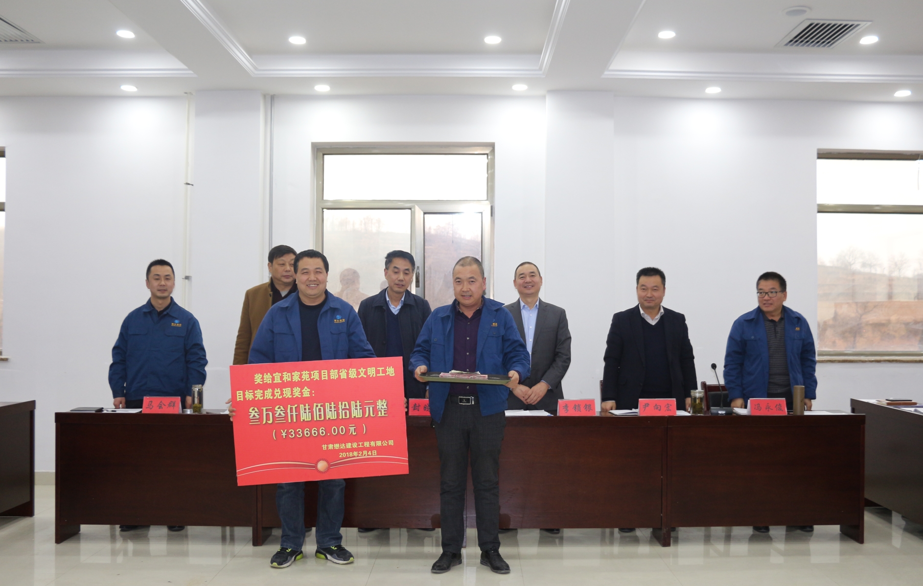 會(huì)議對(duì)徽縣宜和家苑住宅小區(qū)項(xiàng)目榮獲2017年度省級(jí)文明工地榮譽(yù)兌現(xiàn)獎(jiǎng)勵(lì),對(duì)榮獲公司2017年度“先進(jìn)工作者”稱號(hào)的金徽酒業(yè)項(xiàng)目部材料員王德杰、亞峰礦業(yè)項(xiàng)目部施工員張仲凡、宜和家苑項(xiàng)目部安全員李鵬、經(jīng)營(yíng)預(yù)算部預(yù)算員馬自乾、商砼站駕駛員田朝進(jìn)行了表彰獎(jiǎng)勵(lì)。