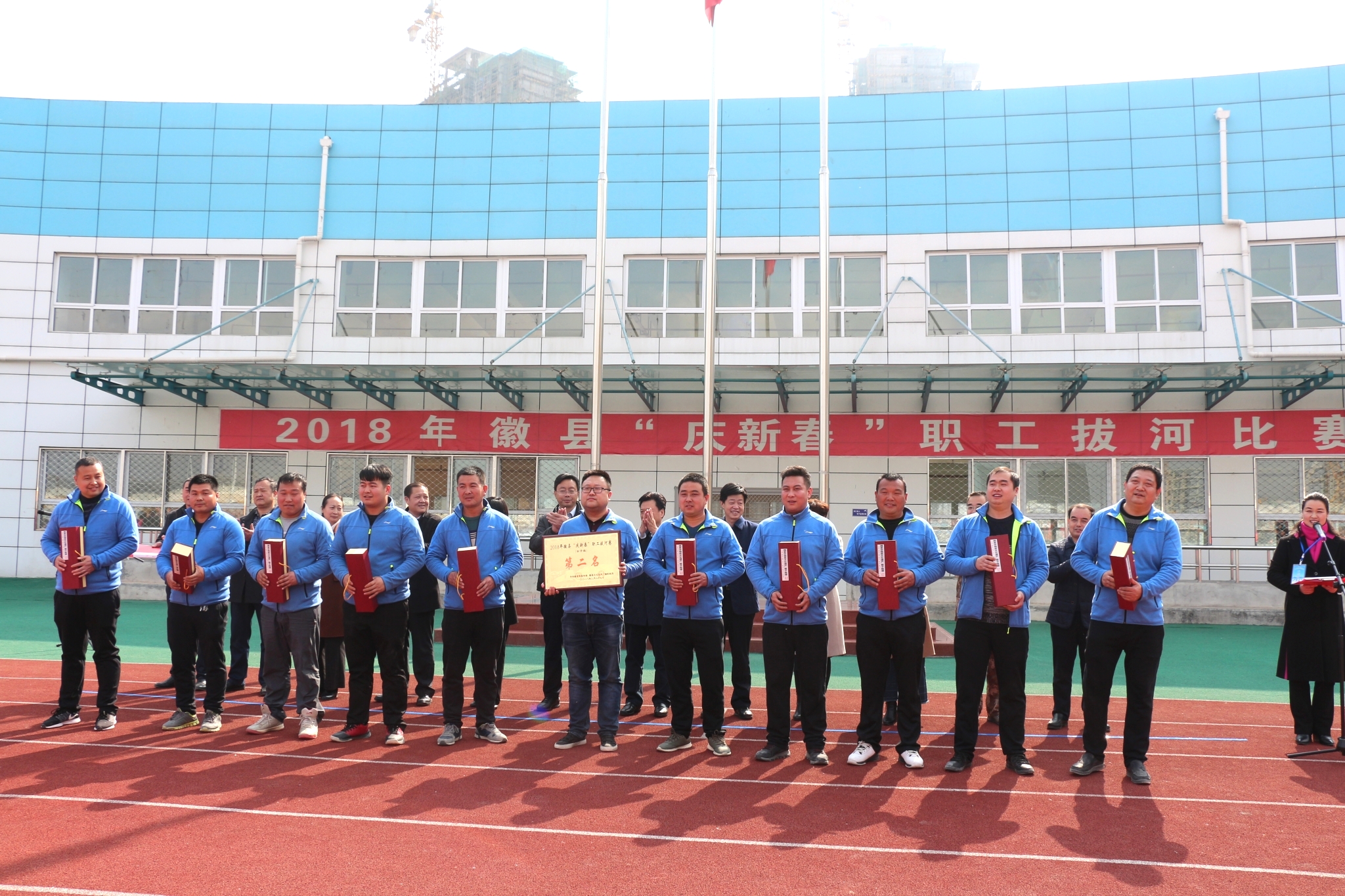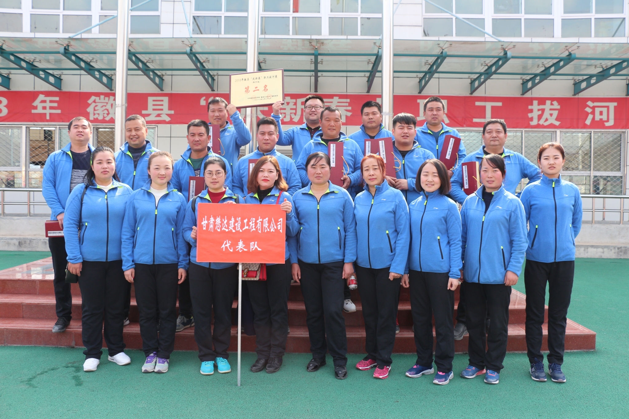 由中共徽縣委宣傳部、徽縣文化體育廣播影視局組織的2018年徽縣“慶新春”職工拔河比賽于2月27日上午在徽縣體育中心舉行,共46支隊伍參賽(男子組26隊,女子組20隊)。甘肅懋達建設工程有限公司組織男、女代表隊參賽。