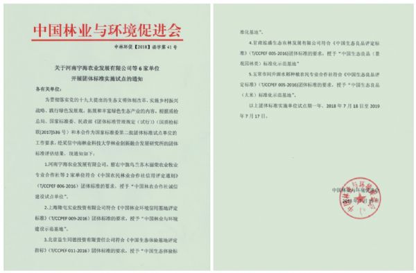 近日,甘肅泓盛生態農林發展有限公司被中國林業與環境促進會授予“中國生態良品(景觀園林類)標準化示范基地”稱號。