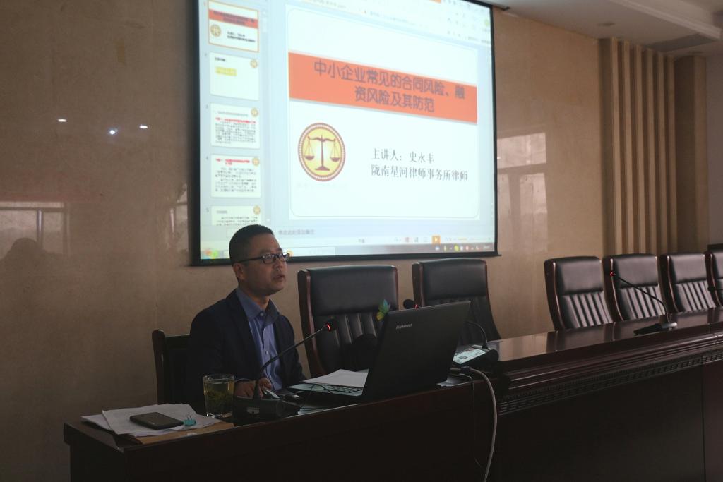 培訓會上,史永豐結合企業生產經營實際,深入淺出地解讀了中小企業常見的合同風險及防范涉及的八個問題,通過實際案例,圍繞建筑施工企業法律風險預防專題,對企業經營中如何應對法律風險、建立法律風險防御體系等重點熱點法律問題,以案說法,幫助企業剖析企業爭議案件及存在的法律風險,提出切實可行的對策建議。
