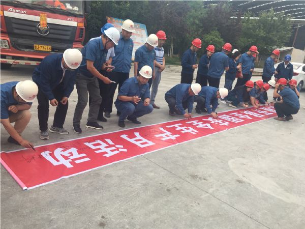 最后,全體人員在紅色橫幅上進(jìn)行了安全承諾簽字。