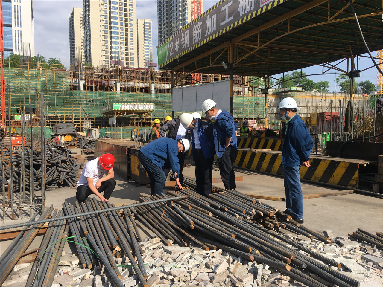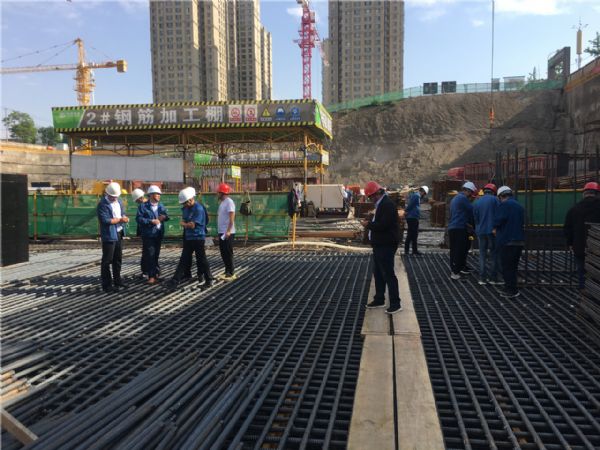 在蘭州聯想科技城項目觀摩學習中,詳細了解了該工程質量創優過程控制情況,重點觀摩了超高層筏板鋼筋與型鋼柱連接節點做法、筏板鋼筋撐鐵設置、大截面柱模板加固及預制纖維石膏模盒填充箱等內容;并就有關問題現場進行了溝通交流。