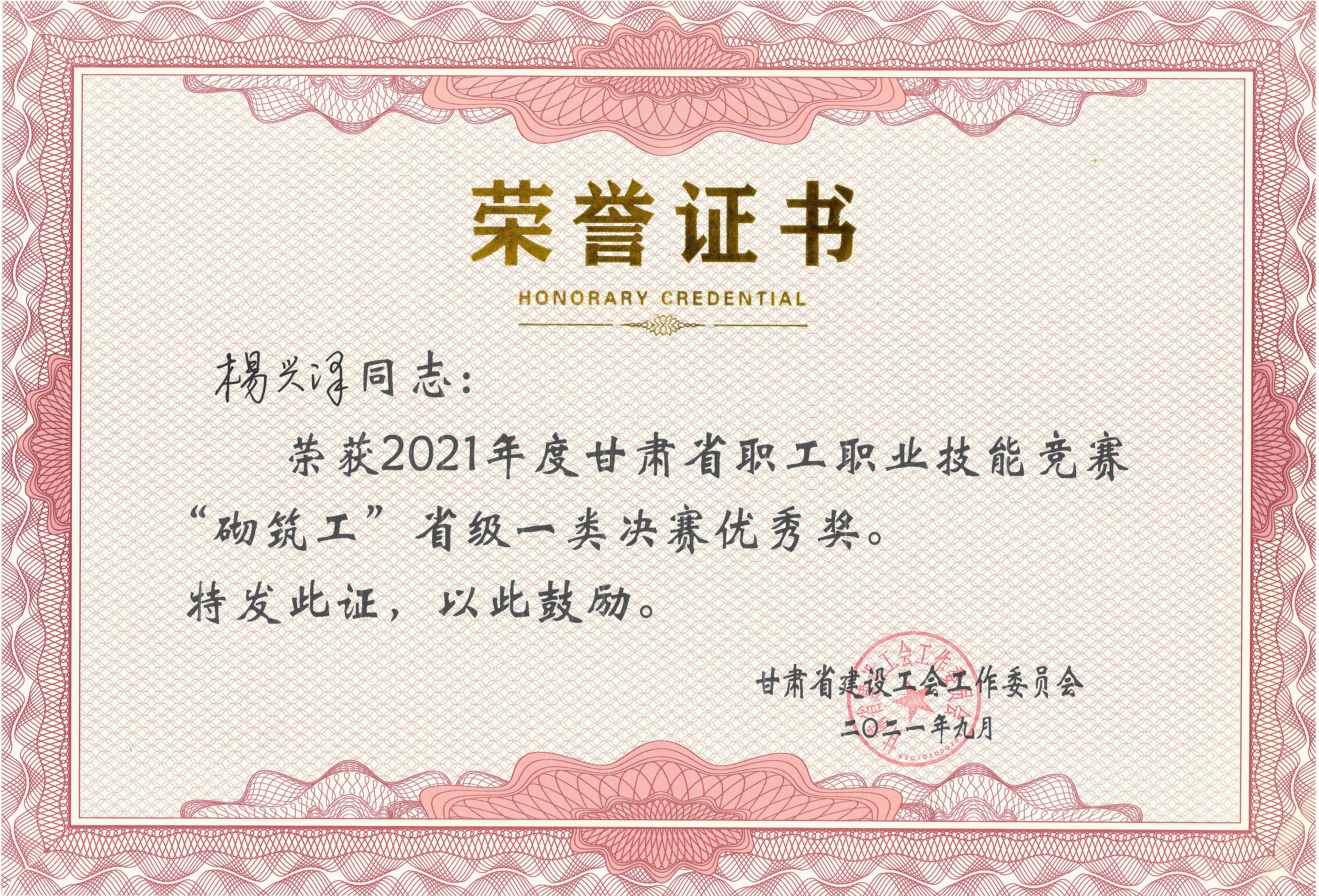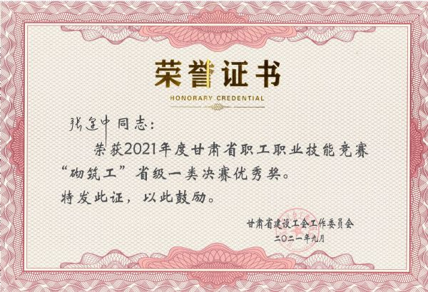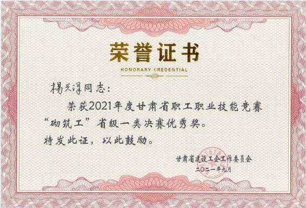 最終,公司選派選手張建中、楊興澤榮獲比賽優秀獎,甘肅懋達建設工程有限公司榮獲優秀組織獎。