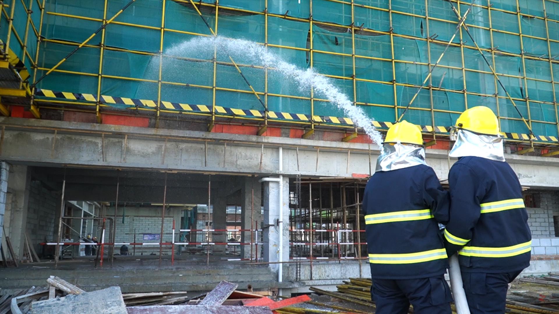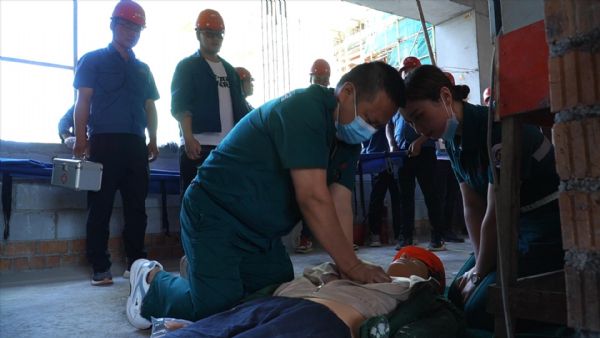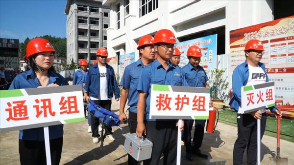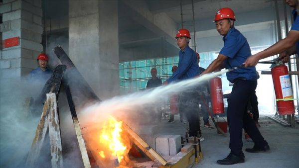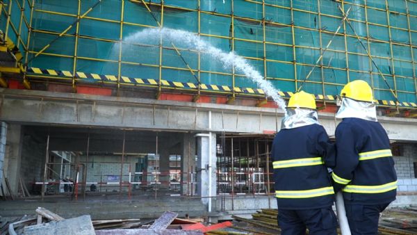 模擬建筑工地發生火災和發生工人觸電事故,施工現場負責人馬上報警,通訊組撥打“119”電話,說明地點,請求消防隊到達現場進行滅火處置,同時撥打“120”電話前來救護。立即向公司相關負責人匯報,公司負責人立即向上級主管部門報告事故發生情況。滅火組、物資供應組、救護組、疏散組立即行動起來,有序開展滅火,現場組織自救和人員疏散工作,在自救的同時縣消防大隊救援車輛趕赴現場將火撲滅,縣人民醫院救護車及救援人員也趕赴現場,將受傷人員檢查處理后,送縣醫院急救中心進行救治。參演各小組按照指令有序開展救援,配合緊密,達到了“練”為“戰”的目的。