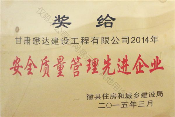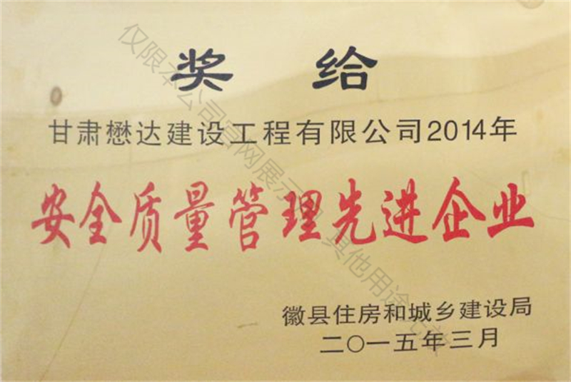 2014年安全質量管理先進企業