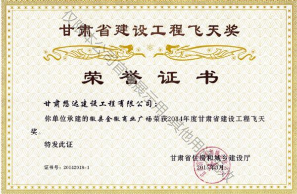 金徽商業廣場-2014年甘肅省建筑工程飛天獎