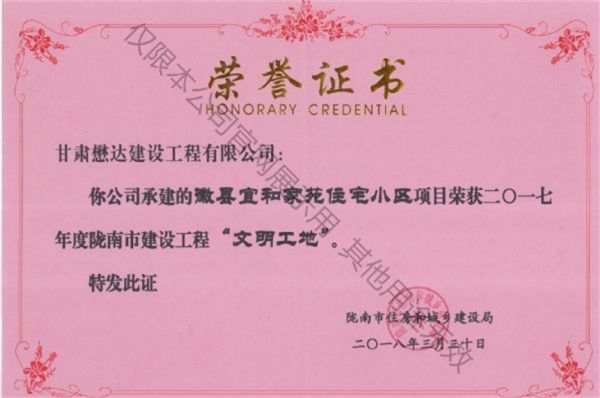 徽縣宜和家苑住宅小區工程--2017年度隴南市建設工程文明工地
