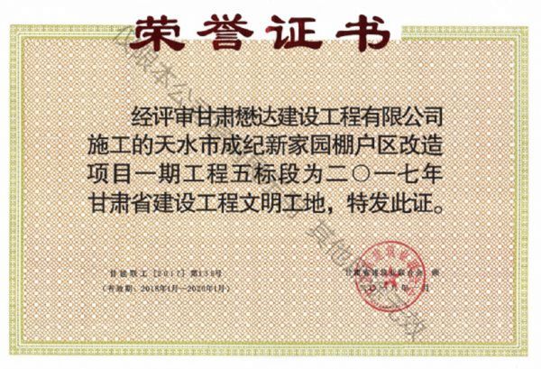 天水市成紀新家園棚戶區改造項目一期工程五標段--2017年度甘肅省建設工程文明工地