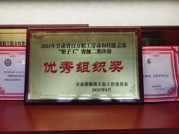 近日,甘肅省百萬職工勞動和技能競賽“架子工”省級二類決賽在甘肅蘭州圓滿落幕。懋達建設選派優秀技術工人參加比賽,榮獲“優秀組織單位”榮譽稱號。
